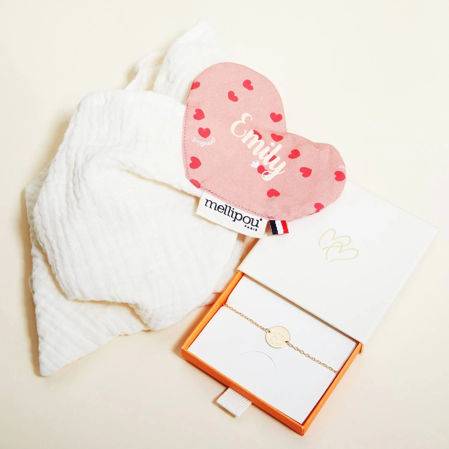 Coffret cadeau Doudou lange et bracelet personnalisé Merci Maman x Mellipou