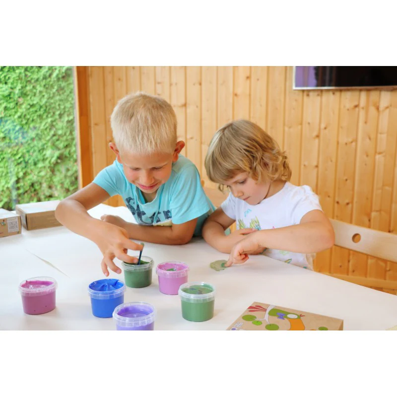 Laissez la créativité des enfants s‘exprimer avec notre peinture à doigts entièrement naturelle ! Notre coffret « Aki« , composé de 4 pots de peinture (120g) aux couleurs rouge, vert, bleu et jaune, est fabriqué en Allemagne avec des ingrédients naturels et écologiques, ainsi que des pigments végétaux et minéraux de qualité supérieure. Sa consistance crémeuse anti–éclaboussure est parfaitement adaptée pour les petits artistes en herbe.