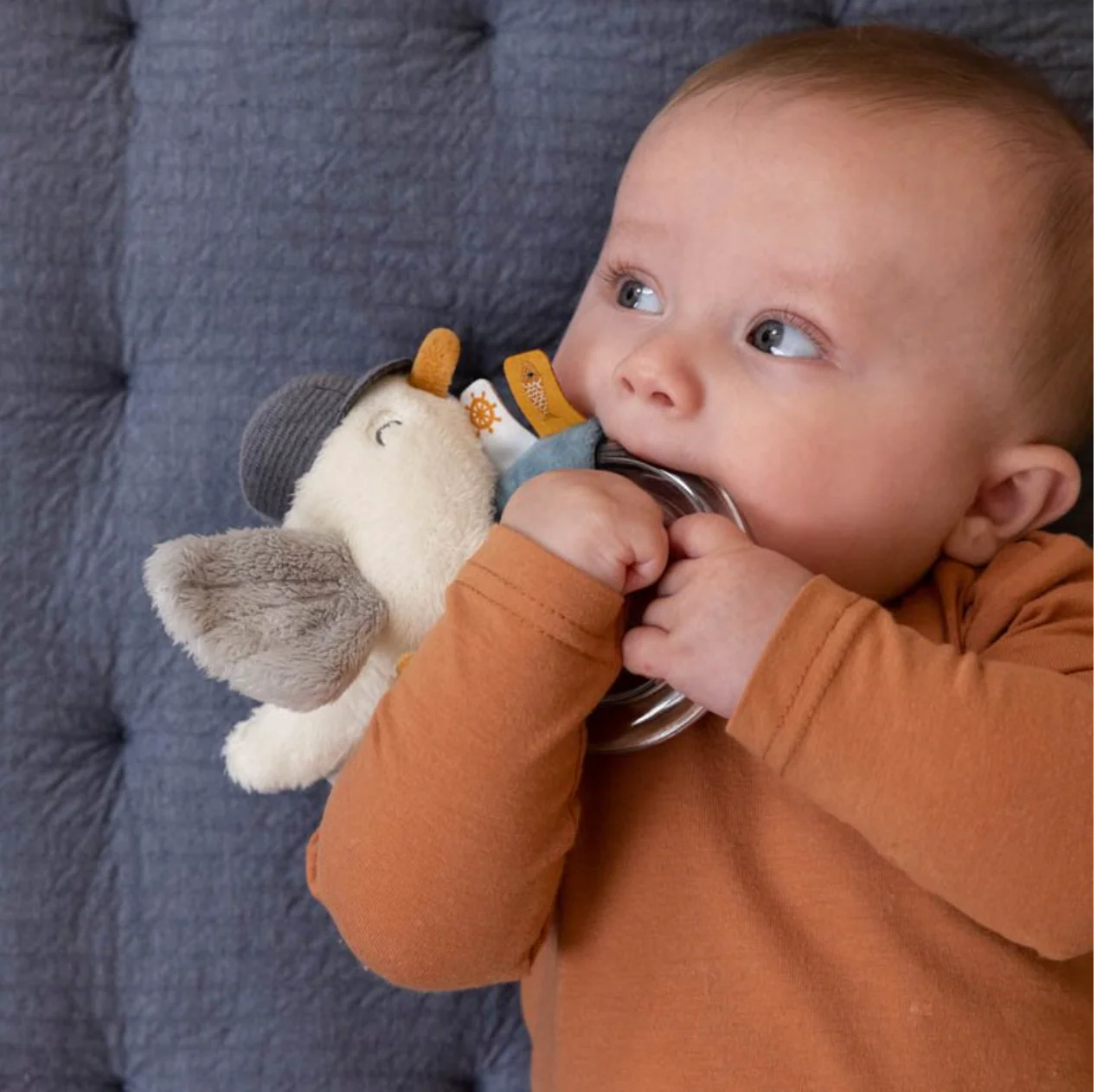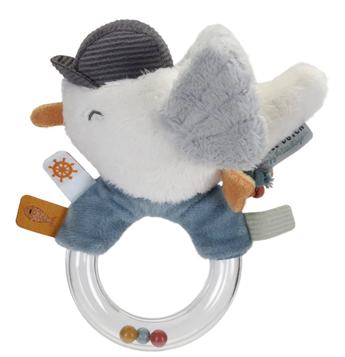 Ayant la forme d’une mouette, ce hochet tient votre bébé bien occupé. Il y a bien des détails amusants à découvrir, allant d’étiquettes illustrées jusqu’à des nœuds de ficelle colorés. Les ailes de la mouette produisent un bruit crépitant, tandis que les petites perles tintent quand votre enfant joue avec.