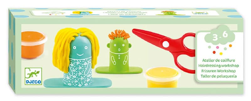 Découvrez l’atelier de coiffure pour pâte à modeler de Djeco, des outils pour s’amuser avec la pâte à modeler pour les enfants de 3 à 6 ans.