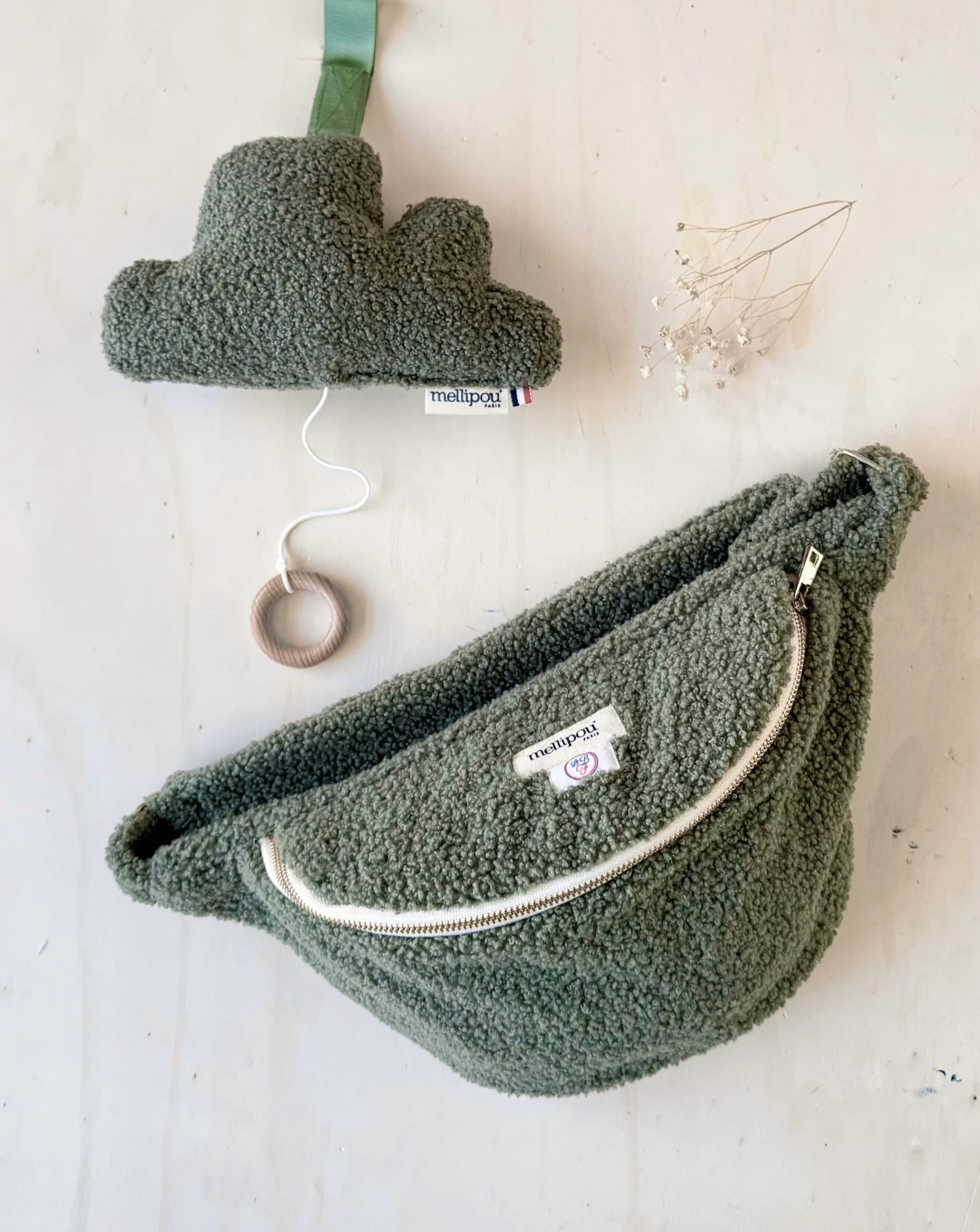 Coffret cadeau Coussin musical bébé coeur et collier personnalisé Mellipou x Merci Maman