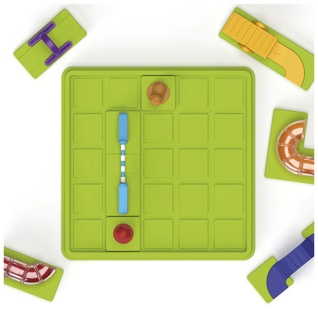 Placez tous les obstacles restants sur le plan de jeu afin de créer un parcours allant du chien à son maître.