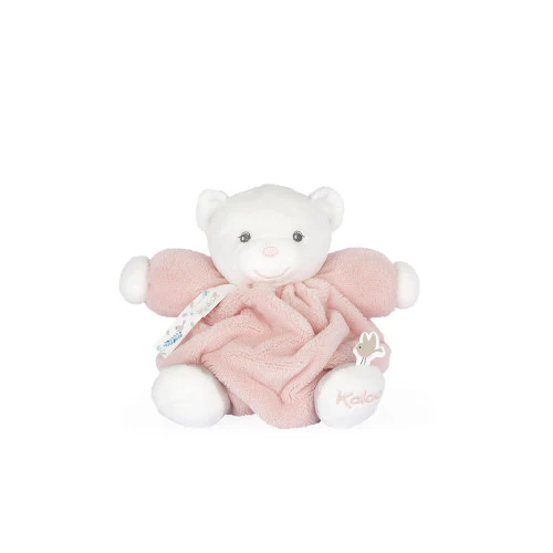 Ourson rose Kaloo à tête crème et au corps incroyablement moelleux et doux au toucher. Son petit minois et son sourire bienveillant en font un compagnon idéal pour votre enfant. Il est agrémenté de rubans imprimés à plumes et oiseaux rappelant la délicatesse et la légèreté de la gamme. Accompagné de son ami l’oiseau il est prêt pour des aventures douces avec bébé. Lavable en machine. Présenté dans une belle boîte cadeau personnalisable avec un message dans l’espace disponible sous le couvercle.
