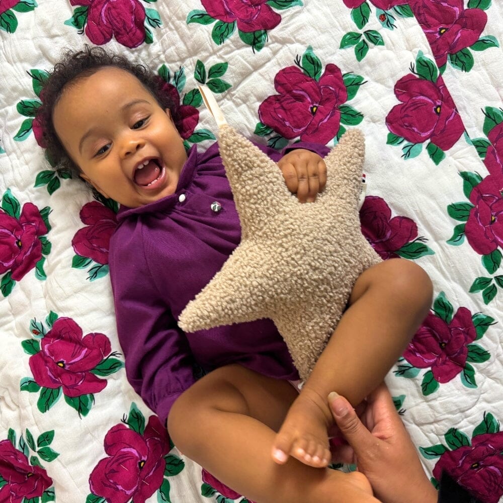 C’est bien chez nous que vous allez trouver les plus atypiques des berceuses. Je dirais même que les berceuses connues sont notre marque de fabrique ! Et chez nous vous avez le choix de la berceuse dans notre catalogue que vous pouvez écouter ici 👉🏻. Cette étoile musicale est en tissu « moumoute » beige, tellement douce qu’on s’endormirait dessus au bureau !