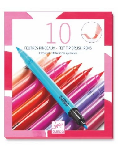 Djeco vous présente ses 10 feutres pinceaux nouveaux avec deux embouts, un feutre fin et un feutre pinceau pour adapté la grosseur du dessin. Des feutres pour les enfants à partir de 6 ans.