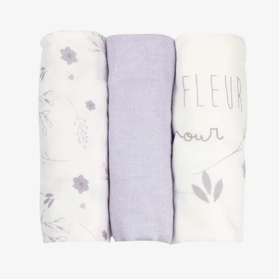Craquez pour ces 3 langes bébé 70×70 cm multifonctions assortis aux motifs et écritures tendances. Confectionnés en mousseline de coton de qualité et saine, ils offrent une grande douceur et respectent la peau délicate des touts petits. Labellisés Oeoko-tex, ils garantissent une composition neutre et sans substance chimique et respectueuse de l’environnement. Cette matière s’adoucit lavage après lavage.