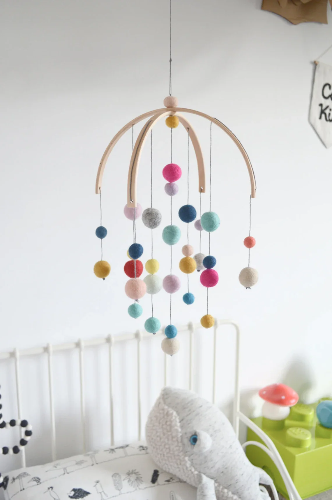 Nature et bien-être: Confectionné avec une laine anti-bactérienne, ce mobile garantit un environnement sain pour votre enfant. Les boules en pure laine feutrée et la structure en bois de hêtre sont des choix éco-responsables, loin des plastiques et des produits synthétiques.