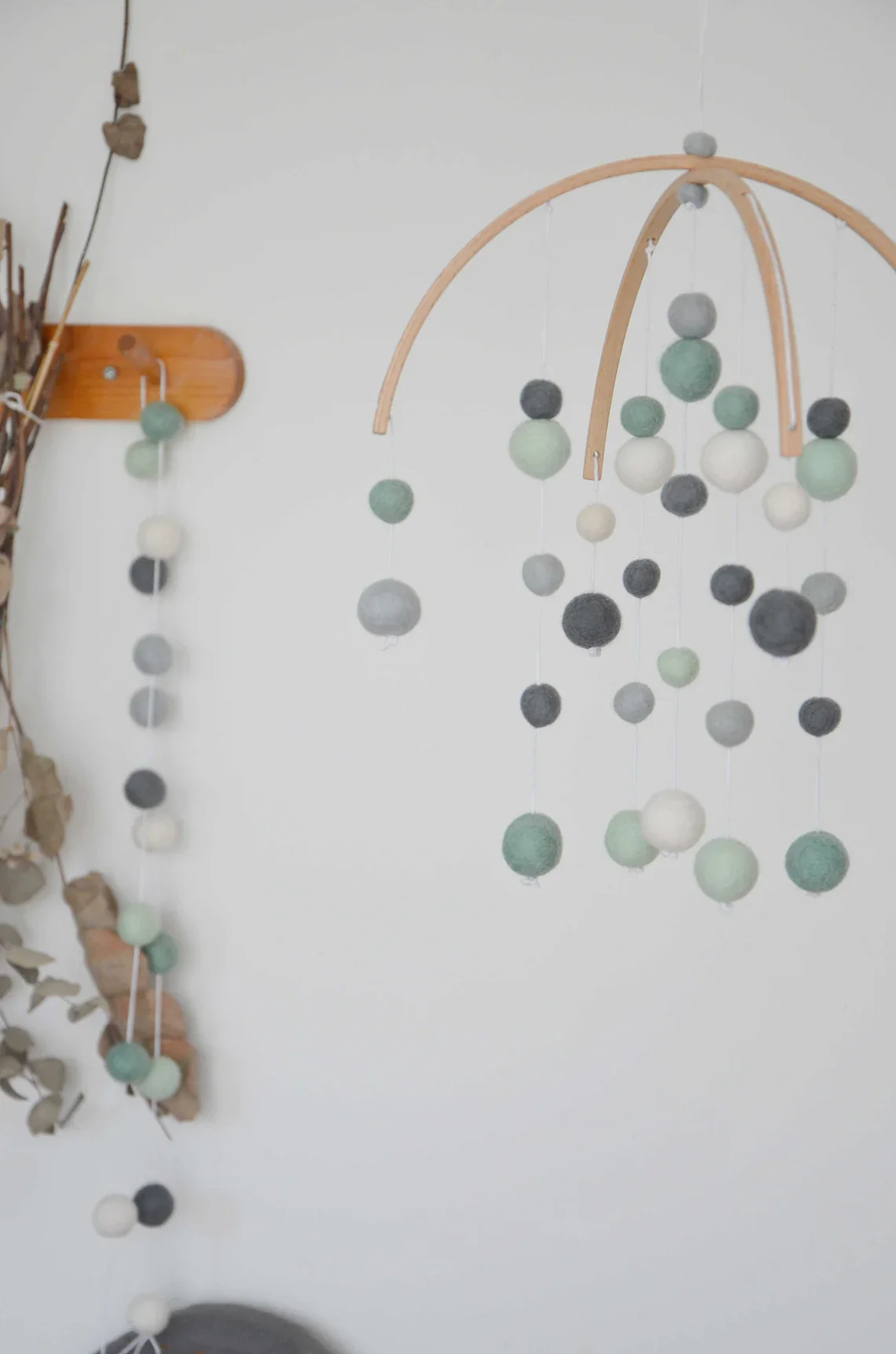 Nature et bien-être: Confectionné avec une laine anti-bactérienne, ce mobile garantit un environnement sain pour votre enfant. Les boules en pure laine feutrée et la structure en bois de hêtre sont des choix éco-responsables, loin des plastiques et des produits synthétiques.
