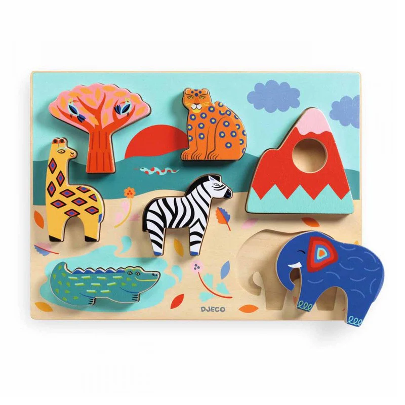 Savana Story est un puzzle en bois sur le thème de la savane.
