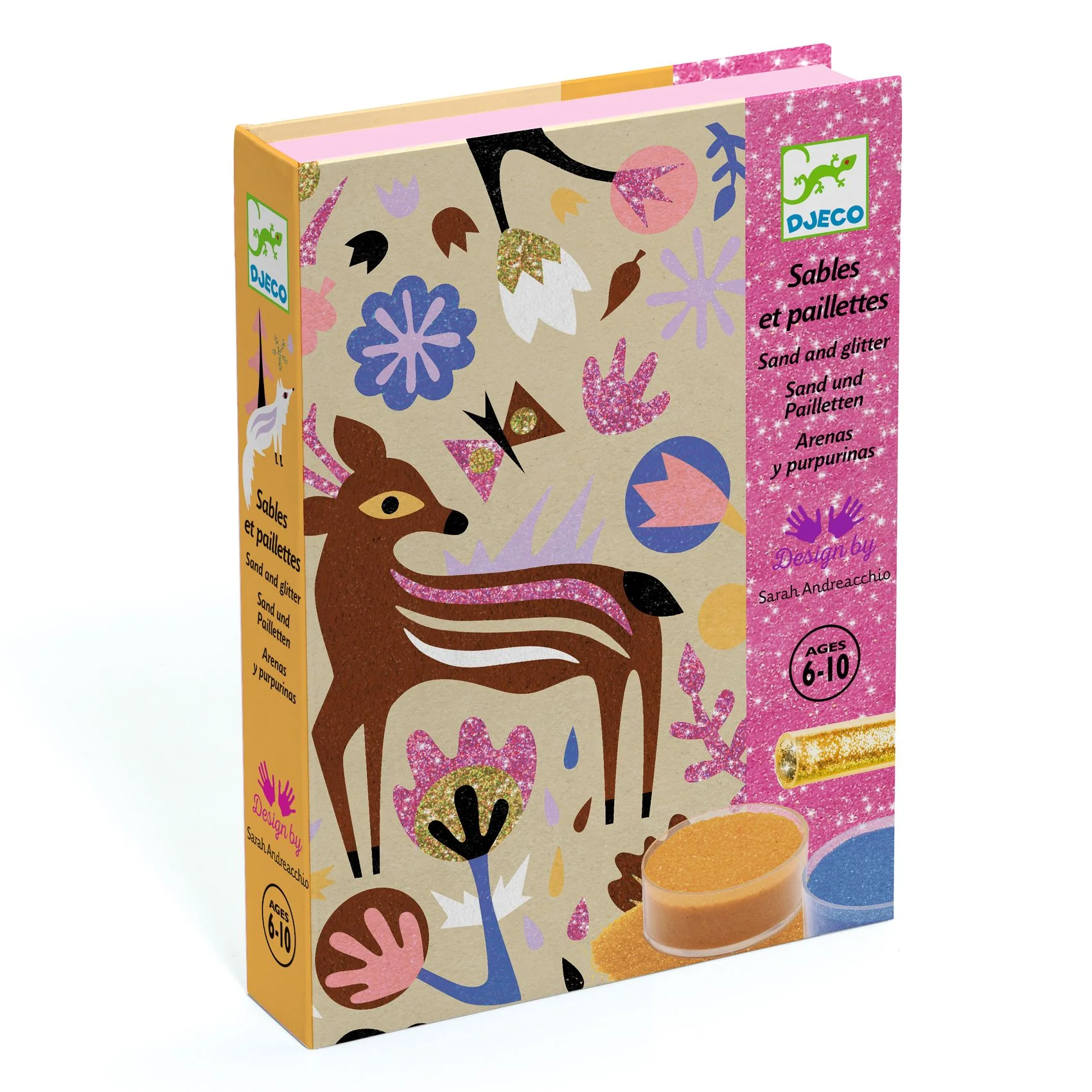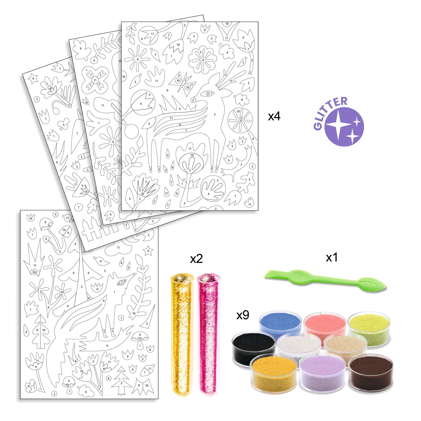 4 tableaux sur le thème de la forêt à illuminer avec du sable coloré et des paillettes. L’enfant place son tableau dans la boîte, il dévoile les zones préencollées grâce à l’outil fourni, puis les saupoudre de sables colorés et de poudre pailletée en suivant le code couleur indiqué dans le livret. Une fois l’activité […]