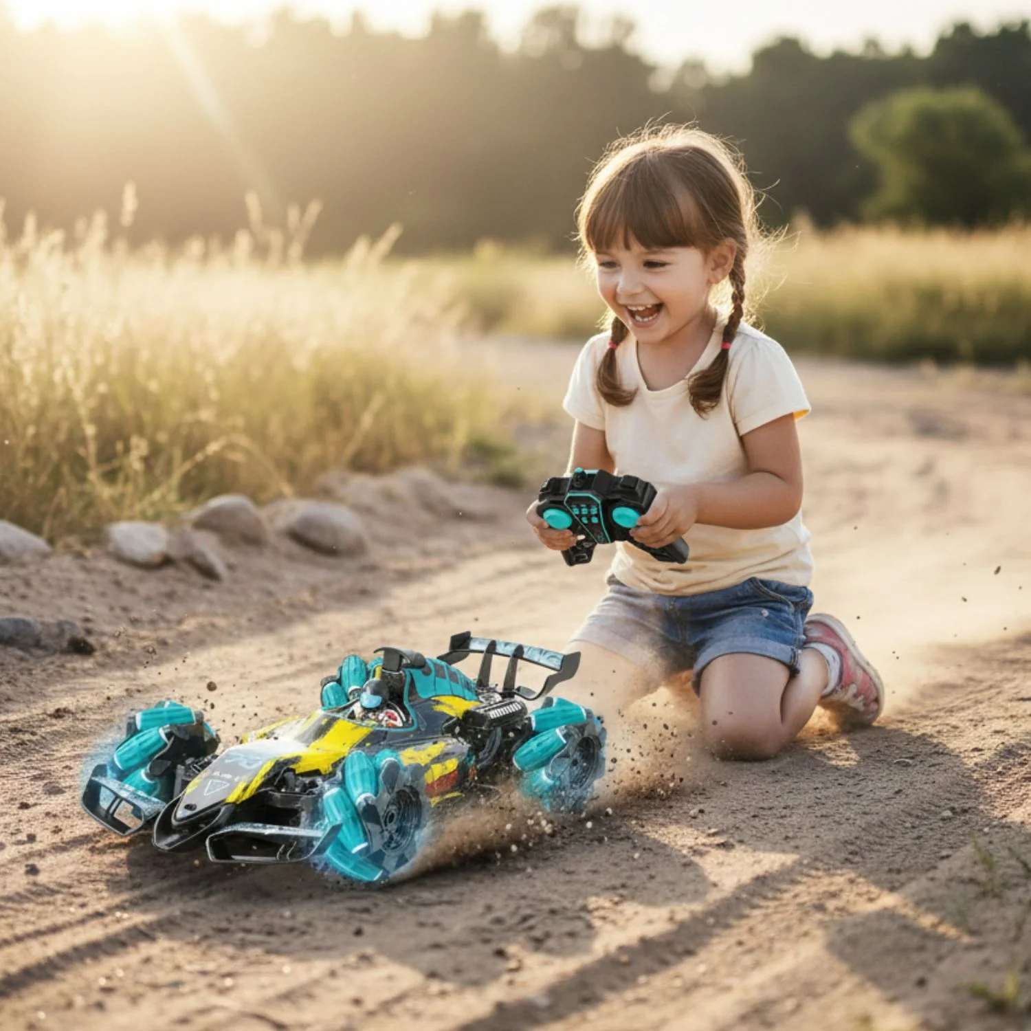 Transformez les jeux de votre enfant en spectacles éblouissants grâce à la fonction spray réaliste , les lumières LED multicolores et la musique dynamique de notre Voiture télécommandée avec spray – MistSpin.
