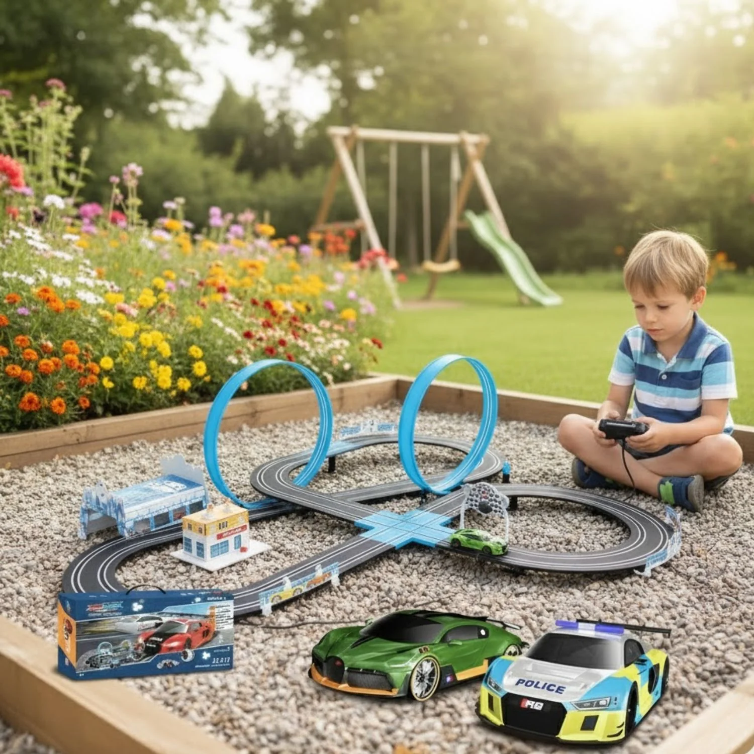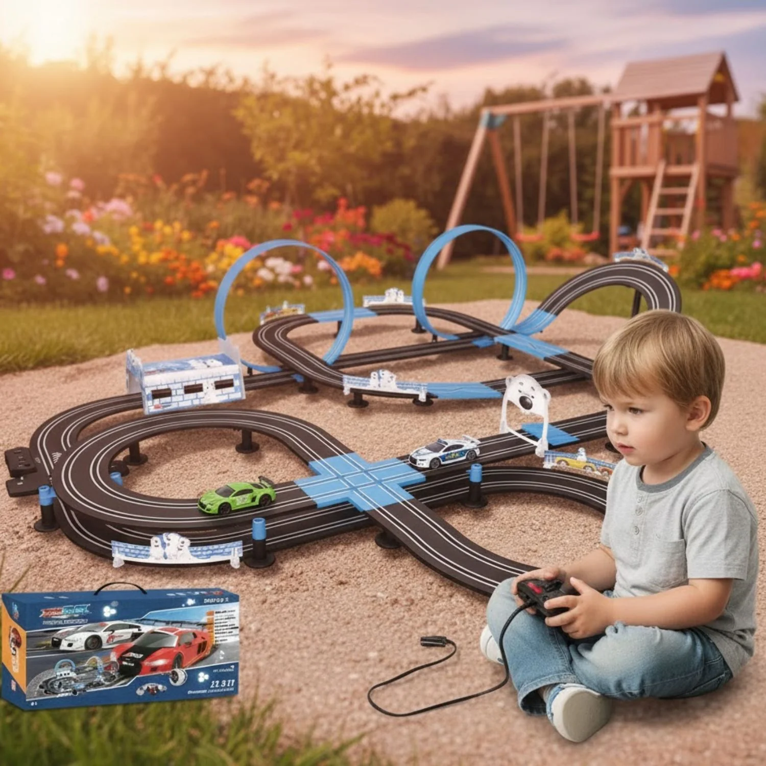 Protégez les petites mains avec le Circuit Électrique E-Racer sans bords ni risques